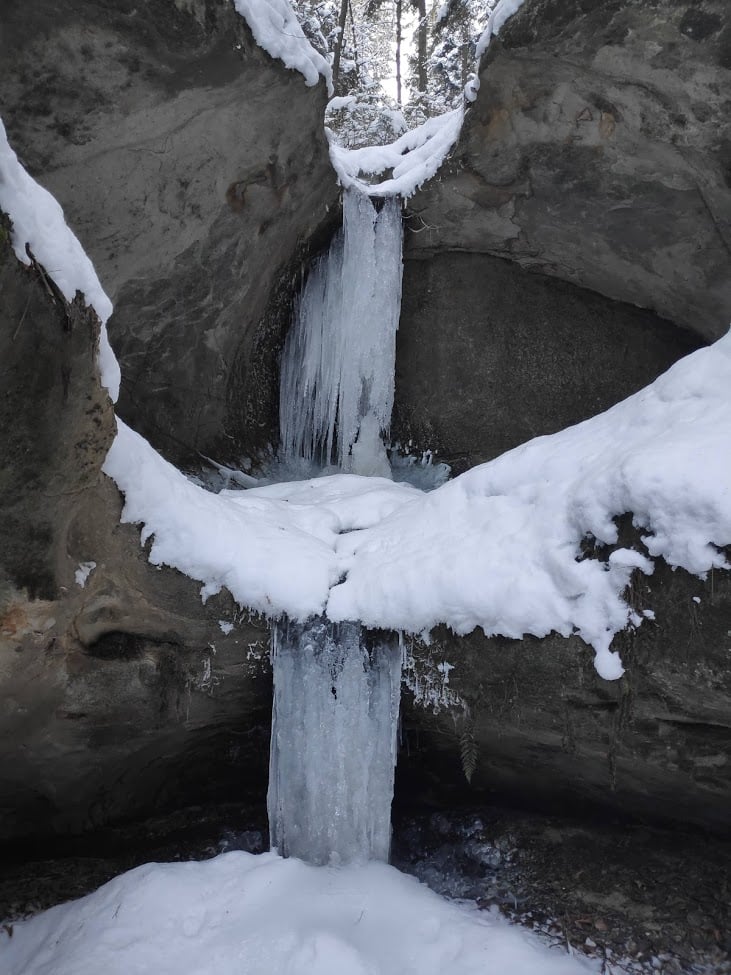 4. Zimą wodospad zamienia się w lodospad, czasami przy dużych mrozach ogromnych rozmiarów.